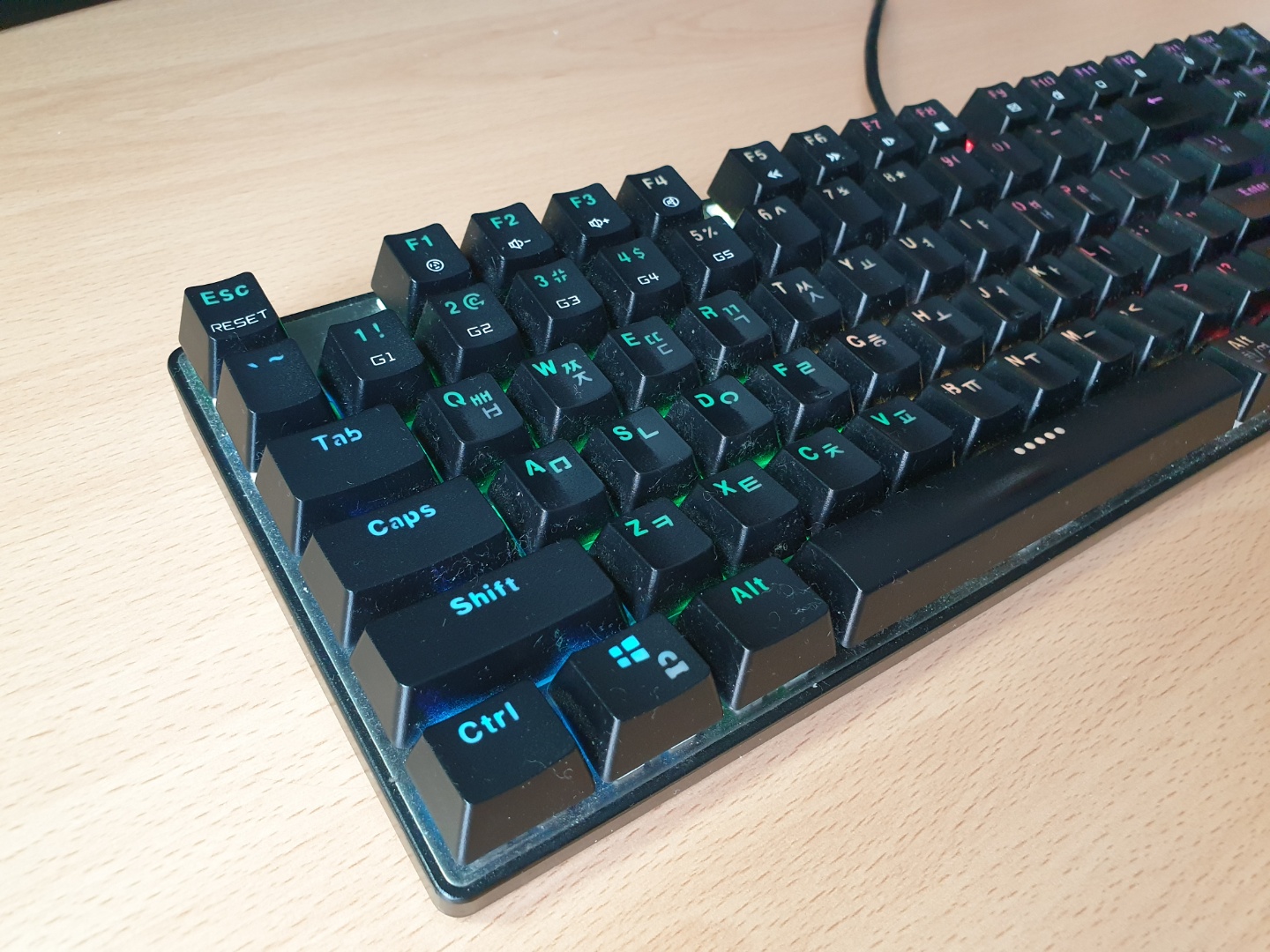 저에게는 구입한지 5년이 되어가는 기계식키보드가 있습니다. 2016년에 구입하였으니 올해로 5년을 채웠지요. 오테뮤 청축을 탑재한 한성컴퓨터 Gtune MKF14 XRGB 기계식 키보드입니다.